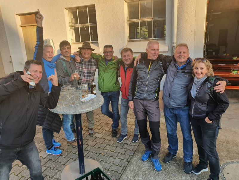 Am 03.10.2022 ist eine kleine Gruppe der TSV AH nach Mönchberg zum Streuobstwiesen - Fest gewandert. Erst mit dem Däuble - Bus zum Naturfreundehaus sind wir anschließend am Schönbuchtrauf entlang bis nach Kayh gewandert und vom Kayher Sportgelände dann runter nach Kayh. Start durch die vielen kleinen Stände war Mitten in Kayh mit einem süffigen Most. Von Kayh ging es dann nach Mönchberg. Zuerst am Marktplatz und dann von Obermönchberg nach Untermönchberg bis zur Bushaltestelle Richtung Herrenberg. Alles in Allem eine sehr kurzweilige und auch kulinarisch vor allem sehr interessant. Es gab alles mögliche vom Kayhpirinha bis zum Möchburger Das Wander OrgAH Team |