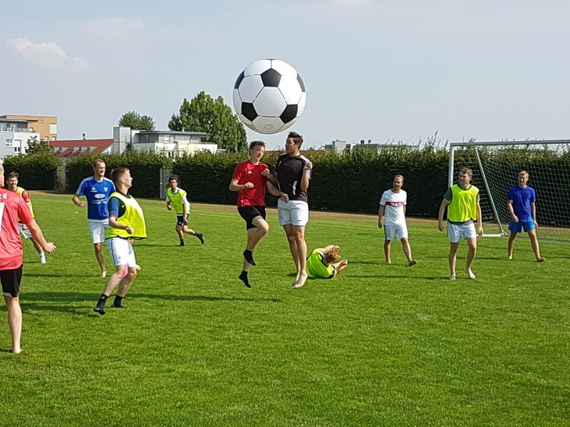 Mit insgesamt 31 Teilnehmern gastierten wir wieder in der Sportschule Ruit, um uns im 3-tägigen Trainingslager den Feinschliff zu holen. Mit insgesamt 4 schweisstreibenden Einheiten sowie einer Theorieschulung waren die Tage wieder prall gefüllt. Aber auch der gesellige Teil kam nicht zu kurz, am ersten Abend machten wir einen gemeinsamen Spaziergang in das Sportheim "Talwiesenstube" von Ruit. Am zweiten Abend stand ein FIFA 18- Turnier auf dem Programm. Am Schluss waren sich alle einig, das Trainingslager war wieder einmal top. Auf den Bildern die Teilnehmer sowie eine Szene vom Spiel mit dem Riesenball. |